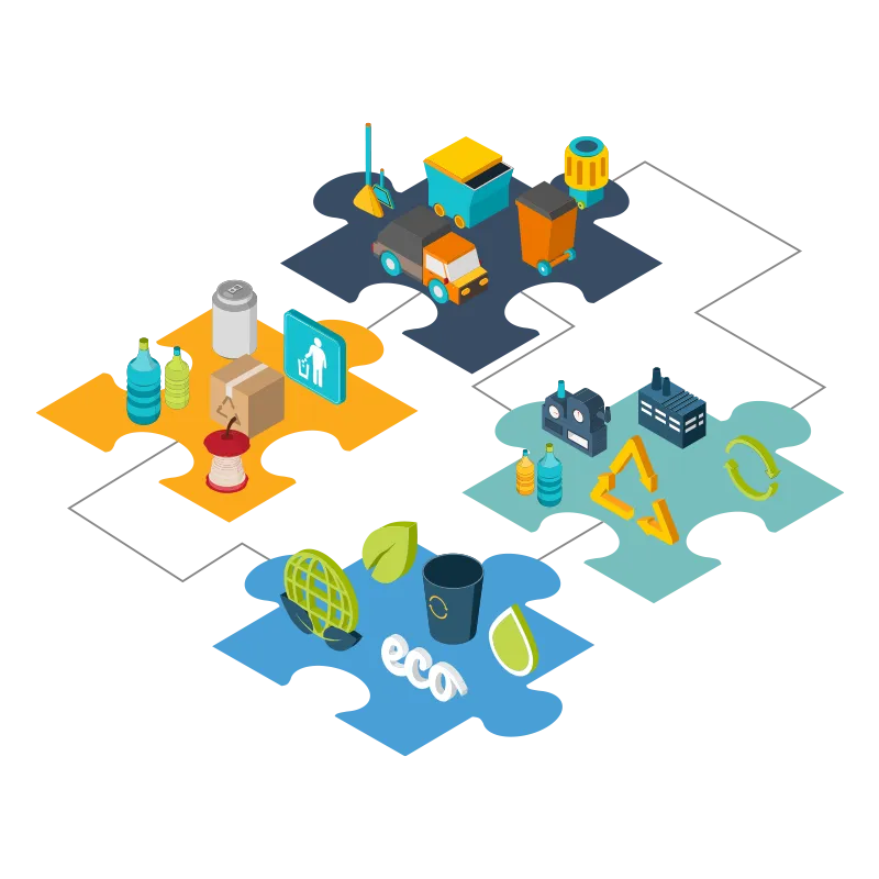 Diseñamos y gestionamos el ciclo completo de la gestión de los residuos: recogida, transporte, tratamiento, valorización y eliminación. Desarrollamos proyectos